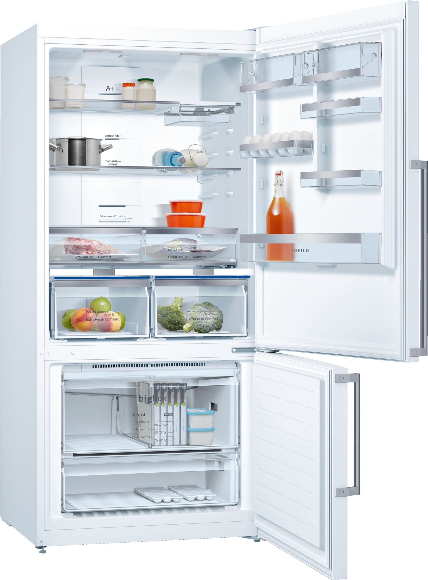 Kendi sınıfının En Büyük Net Hacmine sahip XXL No Frost buzdolabı, ExtraFresh Comfort tazelik sistemi sayesinde yiyeceklerinizin 2 kata kadar daha uzun süre taze kalmasını sağlar.