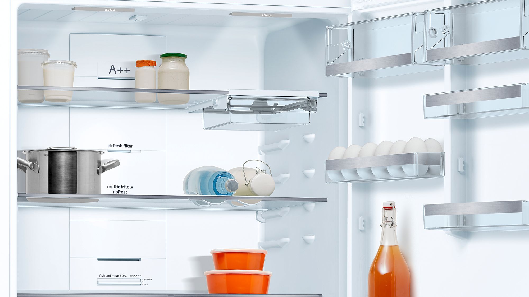 - Led aydınlatma, optimum konumu sayesinde soğutucu içerisinde aydınlık bir ortam yaratır.