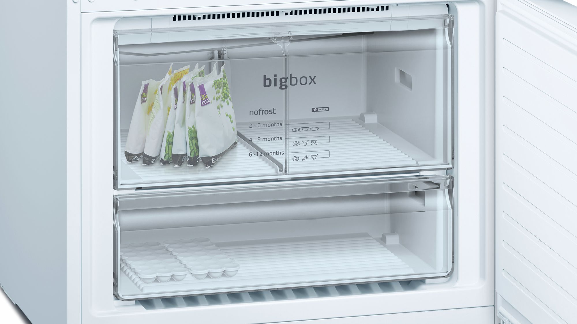- BigBox çekmecesi dondurulmuş büyük gıdalar için ekstra alan sunar.