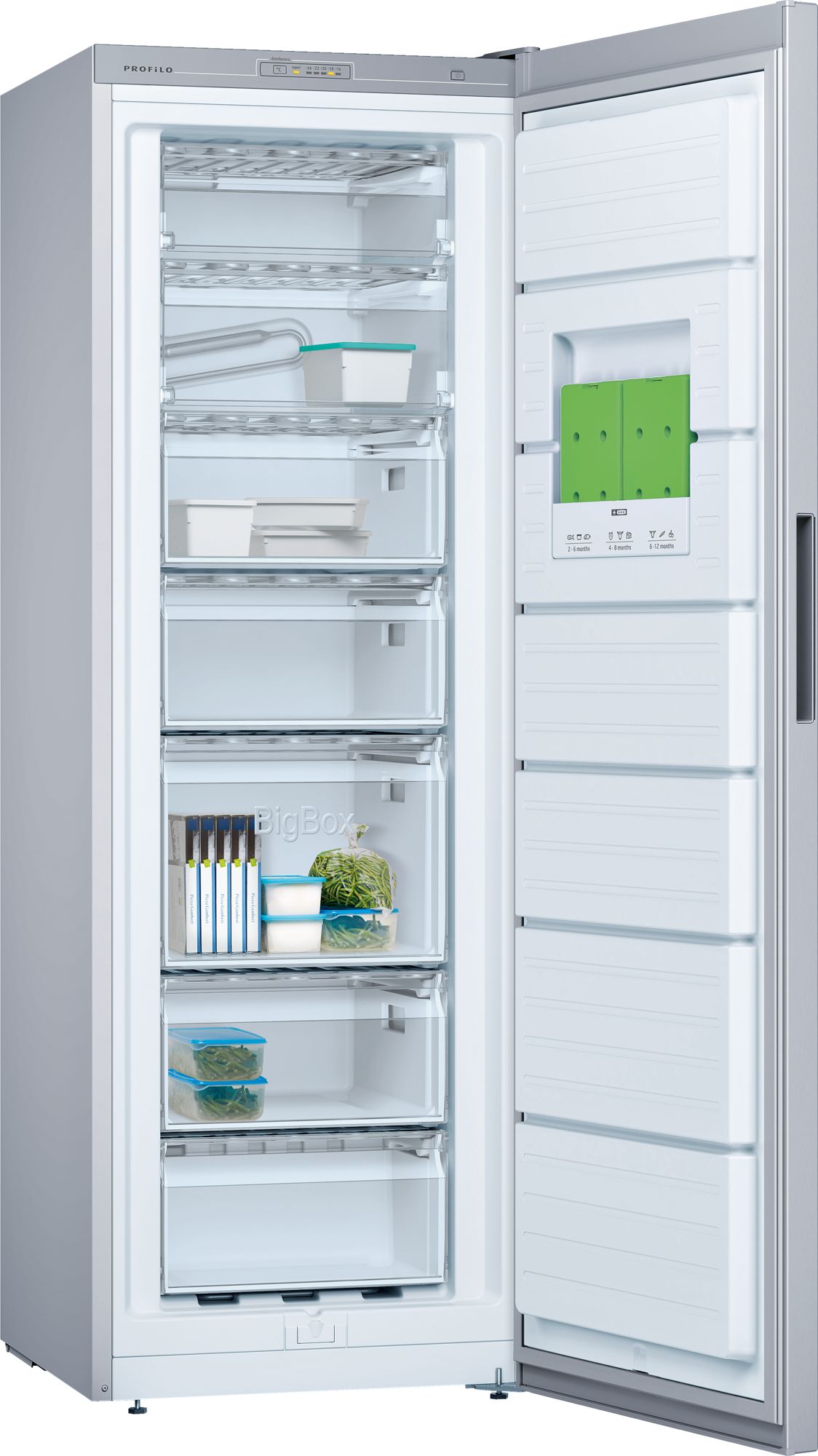 - BigBox çekmecesi dondurulmuş büyük gıdalar için ekstra alan sunar.